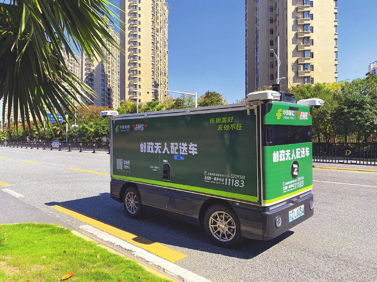 江西邮政无人配送快递车亮相街头。