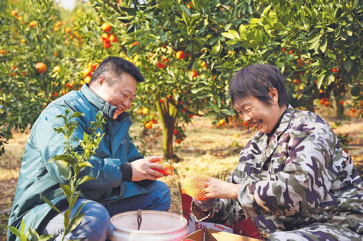 漫步柑橘林,浓浓果香扑面而来,一个个色泽金黄、圆润饱满的柑橘点缀其间。“你看,这25亩柑橘都是我家种的,今年预计产量有4万多公斤,收入能在30万元左右。”李翠英说着话,将一筐柑橘搬上电动三轮车。