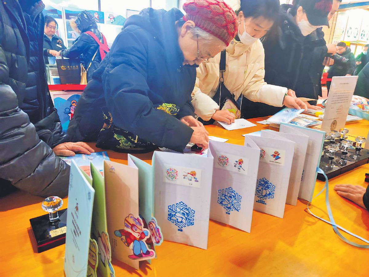 2月7日上午,《第九届亚洲冬季运动会》纪念邮票首发仪式在黑龙江省哈尔滨市南岗区邮政营业大厅举行,众多邮迷赶来排队购买亚冬会邮票和开幕式纪念封。图为81岁的集邮爱好者姜奶奶来到营业厅追寻心仪的亚冬会邮票邮品。