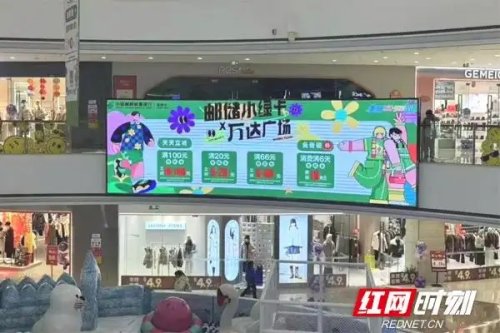 丁女士看到的宣传是邮储银行湖南省分行近期在全省各大知名综合体商圈,如万达、步步高、天虹、友阿等,广泛开展的“邮储小绿卡,逛到就省到”的信用卡宣传活动。此次活动是该分行积极响应国家促消费、扩内需号召,深度融合银行文化特色,通过综合体内外的LED电子屏、大型吊幔、侧旗、水晶立牌等多种媒介,进行满减活动宣传,旨在为客户带来全新的生活消费体验。