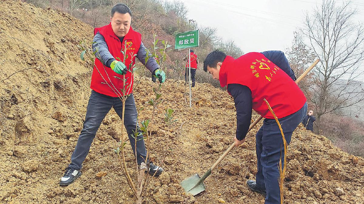 3月12日上午,陕西省略阳县邮政分公司组织党员、团员与青年志愿者开展植树节志愿服务活动。