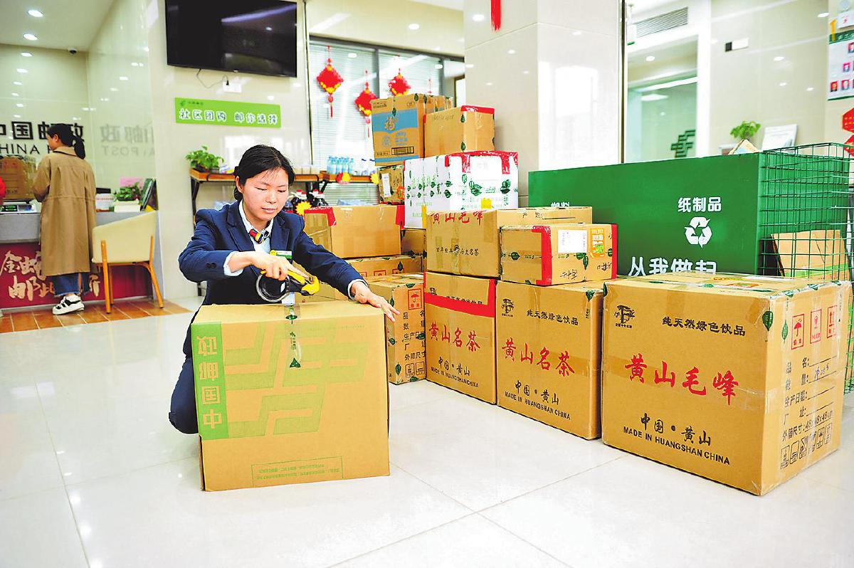 黄山市歙县上丰邮政支局为茶农提供徽茶散件收寄。 □王昌正 摄