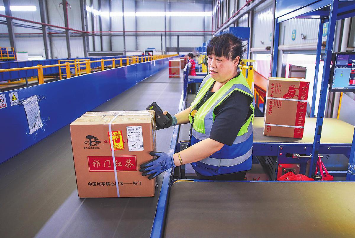 黄山市邮件处理中心优先处理徽茶邮件。□徐雷 摄