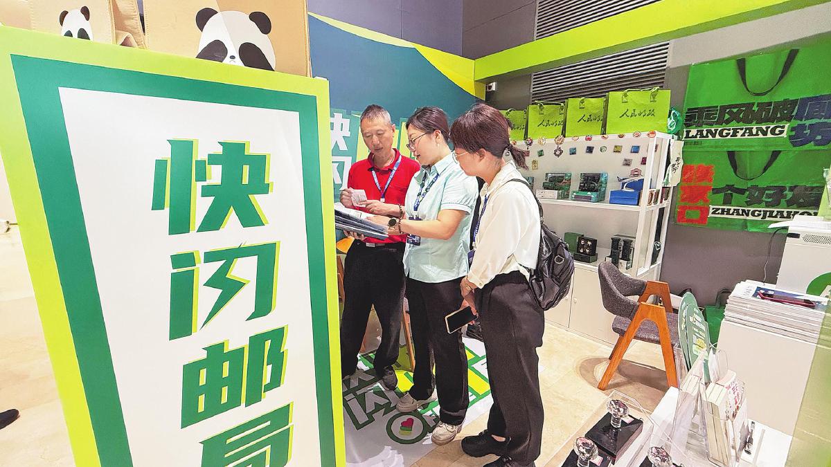 6月16日至20日,2025年中国·廊坊国际经济贸易洽谈会(以下简称“廊洽会”)举行。中国邮政紧扣“降低全社会物流成本”主题,在廊坊临空国际会展中心设置展台,布放“新质生产力”和“低空经济”两个主题展示屏,展示了中国邮政加快培育新质生产力和融入低空经济发展的典型案例,以及无人投递车、无人机、绿色包装箱等应用实践。此外,还展示了在廊坊临空经济区建设的廊坊邮件处理中心工程项目基本情况。廊坊邮政在主会场入口处设置了快闪邮局,推出带有廊洽会主题背景图的有声明信片、“冀邮打卡册”、燕赵传邮徽章等特色文创产品,提供邮政寄递、集邮文创产品销售、有声明信片打印等服务。