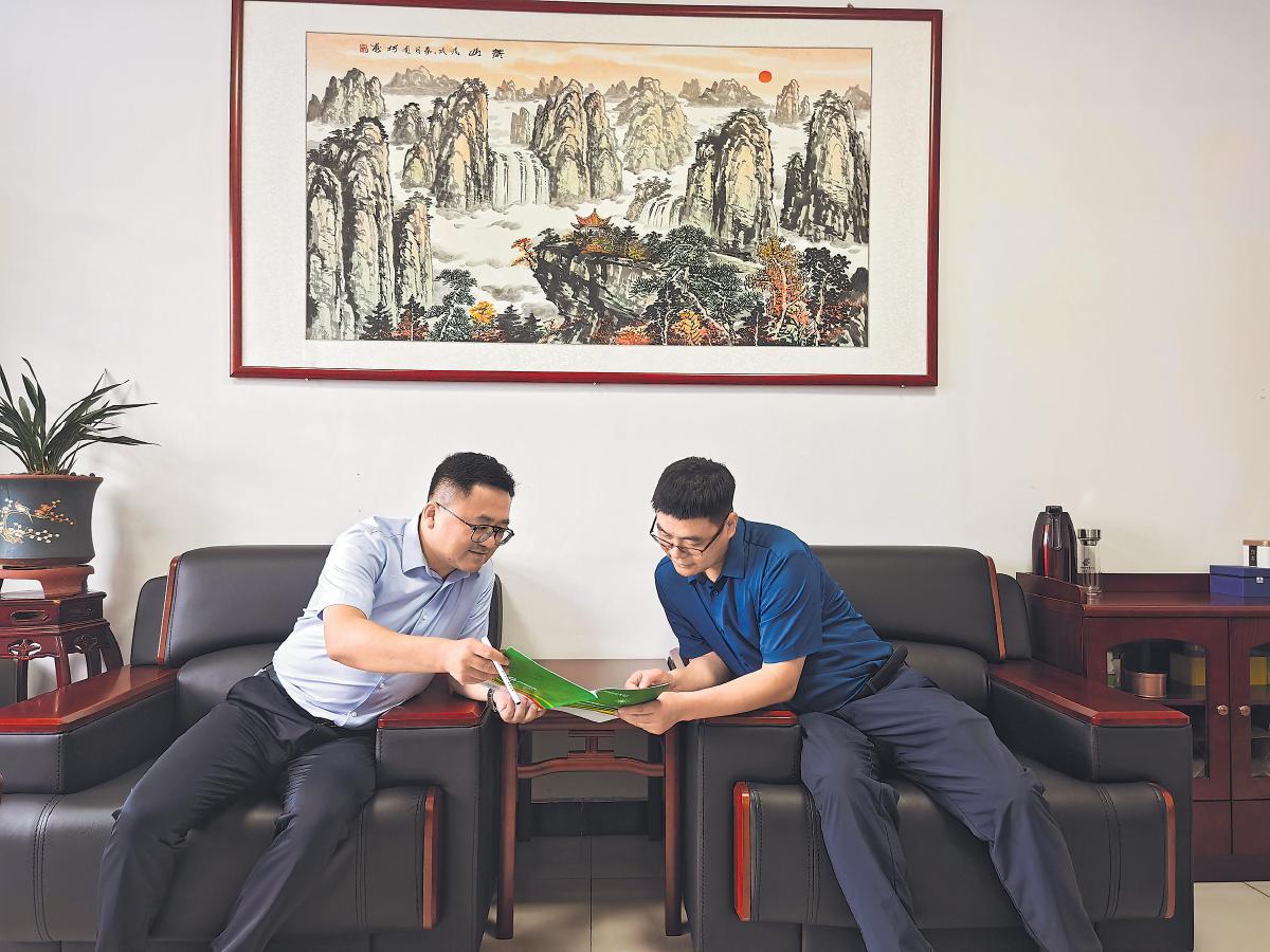赵晨(左)走访客户,调研业务市场。