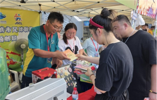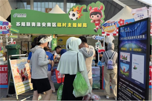 7月6日,江苏足球超级联赛(简称“苏超”)淮安对阵常州的焦点之战在淮安体育中心激情上演。淮安市邮政分公司把握赛事机遇,深化专业协同,以特色文创产品为切入点,深度融入体育盛会,为赛事提供邮政专属的综合服务。