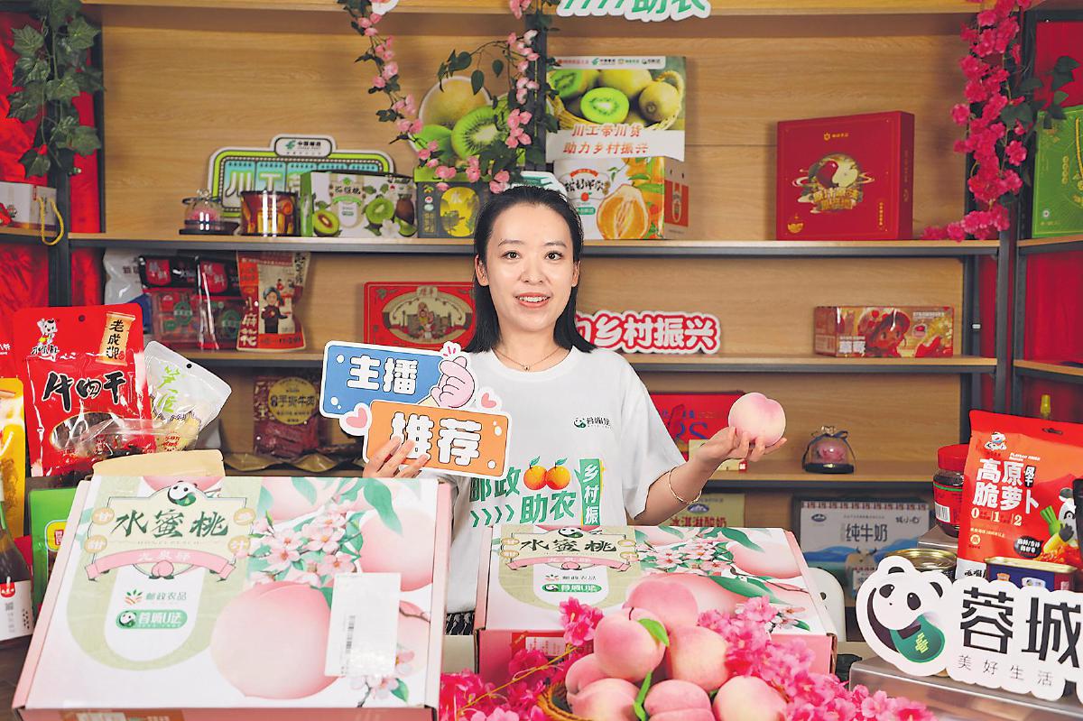 龙泉水蜜桃稳居成都邮政夏日直播间的C位。 □黄丽云 摄