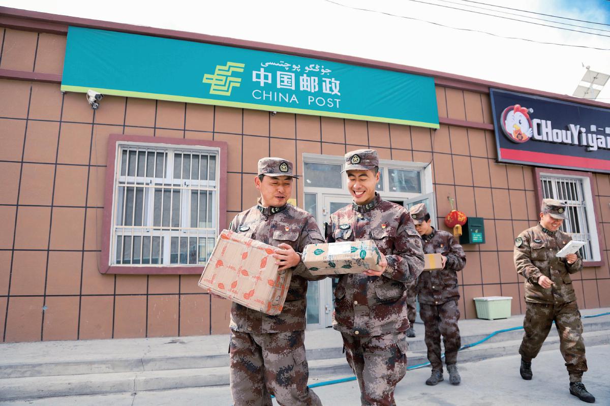 直达新疆叶城县三十里营房地区的邮路开通后,驻地部队官兵从邮政服务点高兴地取出包裹。