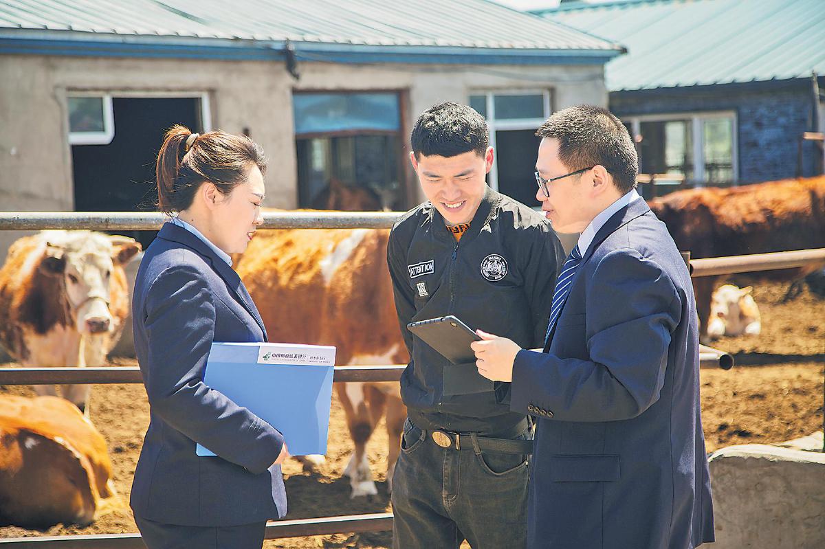 黑龙江省分行员工上门为肉牛养殖户量身定制金融服务方案。