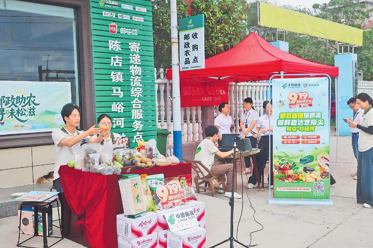 松滋邮政进村驻点开展直播,从源头推介农产品。