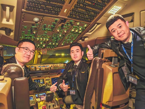 19日5:00,起飞前,机组人员为自己点赞加油,预祝飞行圆满成功。
