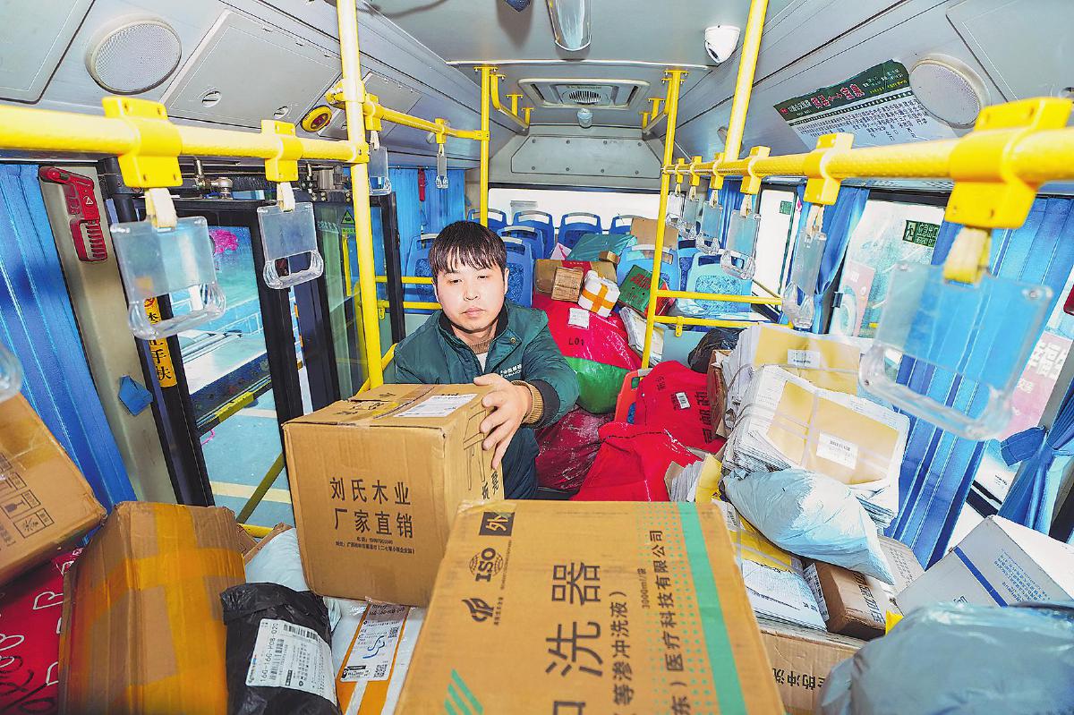 说话间,一辆悬挂着“交邮合作”标志的公交车缓缓停靠在店门口。司机张师傅与关亚杰一起熟练地装卸邮件上下车。“以前跑这趟线,空驶率高,公司运营压力大。现在既能拉乘客,又能运快递,我们的收入也多了点,一举两得!”张师傅笑着说。