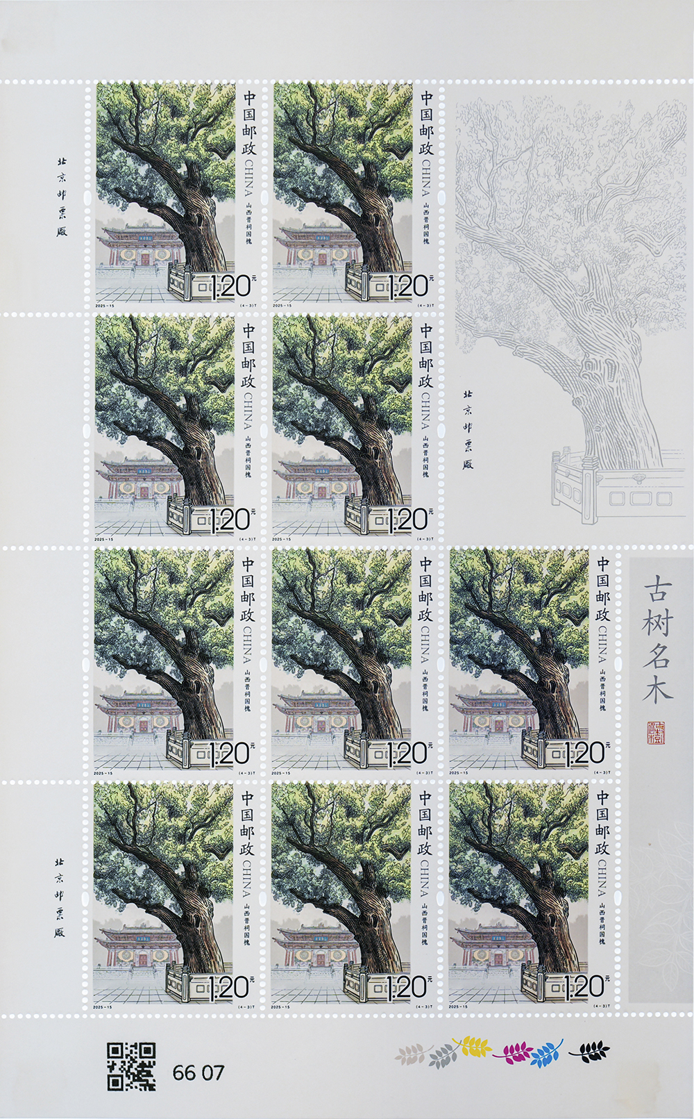 中国邮政定于2025年8月15日发行《古树名木》特种邮票1套4枚。详情如下: